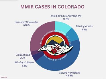 We understand Native identity can be complicated and that many people from all over the world self identify as Indigenous. The definition of "Indigenous" in CO legislation is someone who is an enrolled tribal member or a lineal descendent of an enrolled parent or grandparent. We use MMIR versus the common MMIW acronym because this crisis is not limited to women but impacts all Native Relatives. In CO, there are more Native men missing or murdered than Native women. Our Task Force tracks all CO cases of missing Natives and all murdered Natives; unsolved, solved and killed by law enforcement. We do not have a time limit as currently our oldest case is a lynching from 1879
