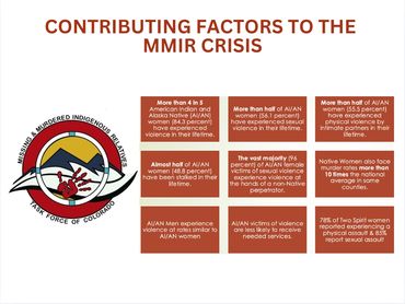MMIR Task Force of Colorado is a volunteer run grassroots organization that provides leadership, policy development, training, data compilation, advocacy and support related to the crisis of missing and murdered Indigenous relatives in the state of Colorado.